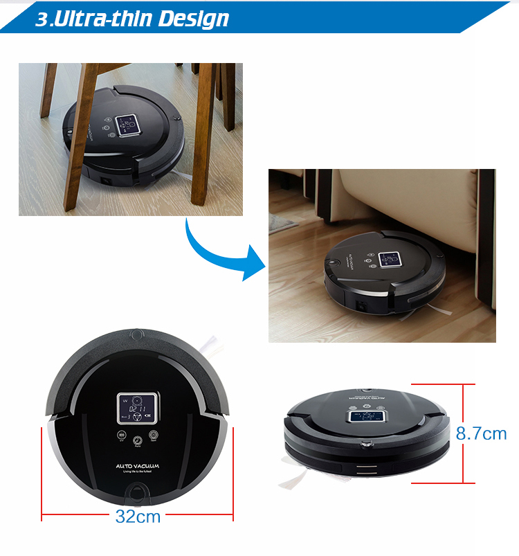 12. Широкоформатный LCD-дисплей для коммуникации и управления вашим роботом-пылесосом. Вы всегда осведомлены о работе робота-пылесоса, о заряде аккумулятора, о том сколько времени длится уборка и т.д.